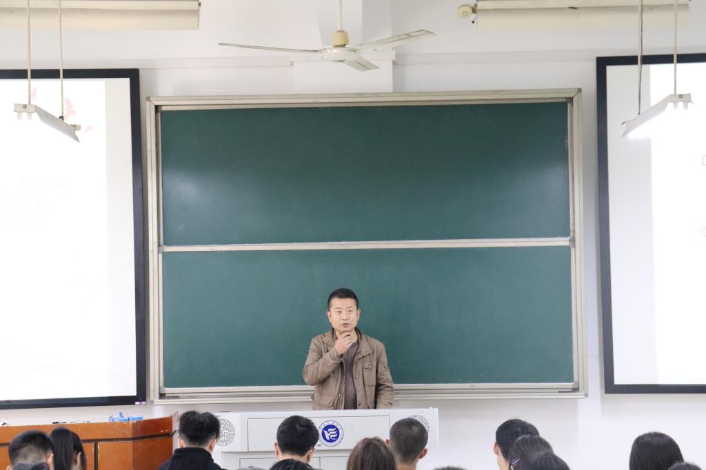 讲座伊始,副书记张宏以“疫情下的中国”为序曲展开叙说,讲述了武汉疫情期间奋战在一线医护人员、一线警务人员、无私奉献的志愿者和热心公益的爱心人士的伟大事迹,他们义无反顾冲在了抗疫第一线,奔赴疫情战场,不计报酬、不畏生死。随后,副书记张宏就武汉火神山医院的火速建成说明了在中国共产党领导下的中国特色社会主义制度的显著优势,展示了在疫情期间特有的中国力量、中国速度和中国担当。他还生动形象地诠释了青年老员工应如何在抗疫斗争中担负起自己的使命,希望同学们勇担时代责任,争做时代青年,书写无愧于时代的青春篇章。
