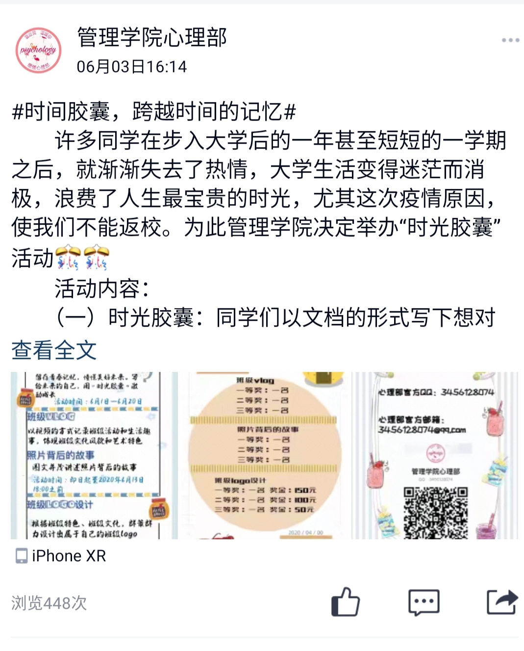 疫情影响期间,为进一步唤起同学们对大学、对人生最初梦想的热情,不忘自己的初心,管理公司于2020年5月20日至6月20日期间举办了“时间胶囊,跨越时间的记忆”主题活动,活动主要包括时光胶囊、班级vlog、班级logo设计三个内容。