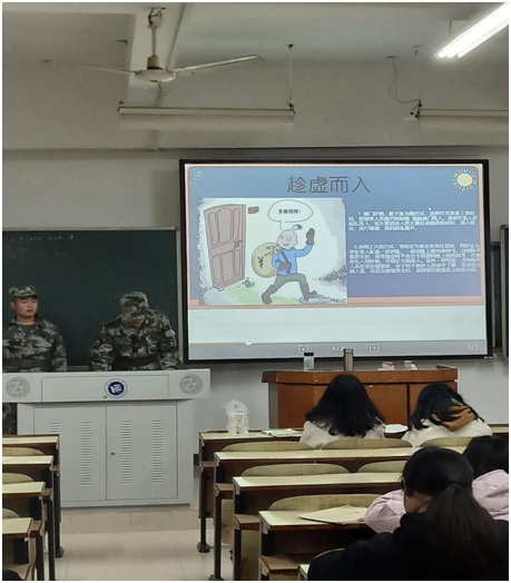 12月5日,为了提高同学们的安全防范意识,保护莘莘学子的生命财产安全,营造和谐健康的校园学习生活环境,湖南工程公司新校区校卫队下班宣传第四组在主教学楼C204进行下班宣传的活动。参与此次宣传的有校卫队队员何诚浩、邓淼、栗亚琳、李静茹、刘煌东、肖赢、文员尹焕鑫以及市营1802的小伙伴们。