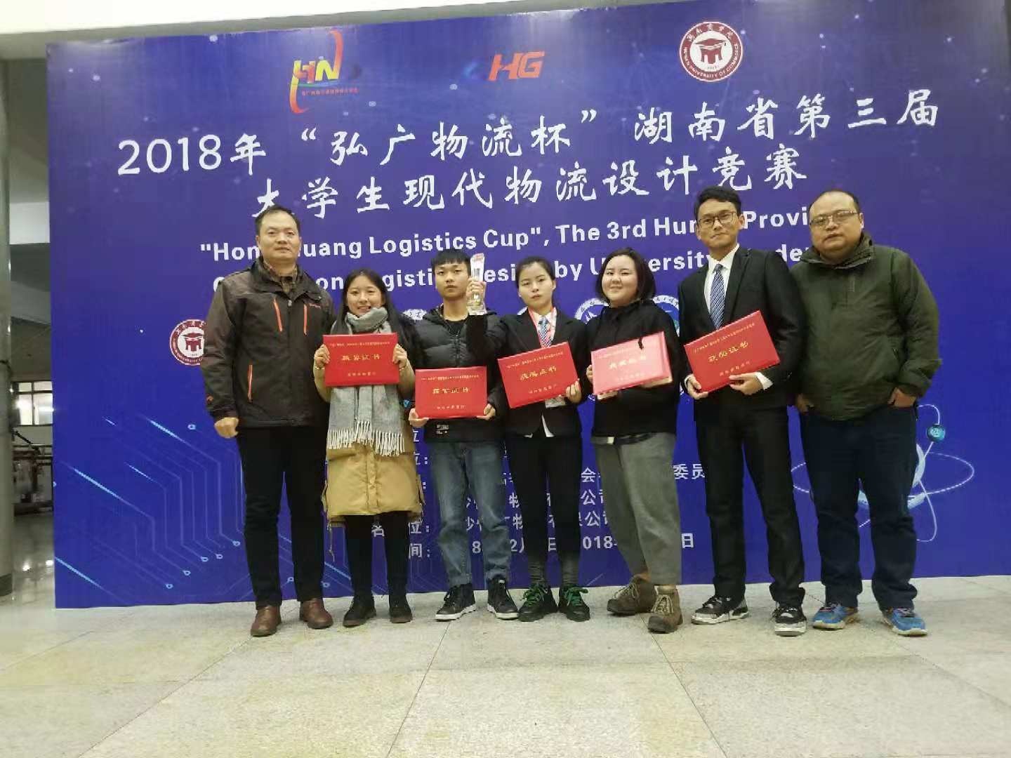 2018年12月8日,“弘广物流杯”湖南省第三届老员工现代物流设计竞赛决赛在湖南太阳成tyc33455ccwww落下帷幕,公司参赛队伍喜获佳绩,由物流管理专业16级金科美等5位同学组队,潘立军、黄韧老师指导的 “夜空中最亮的星”代表队获省二等奖,由物流管理专业15级邱瑾等5位同学组队,李智斌、张思军老师指导的“龙门镖局”代表队获得省三等奖。