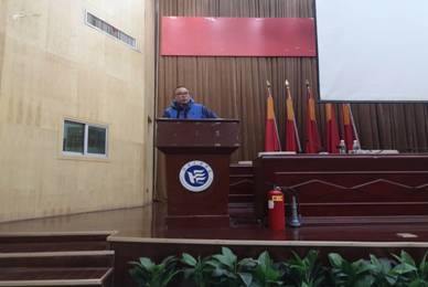 王骏以幽默风趣的开场吸引了所有同学的注意,他首先从员工的日常生活开始讲起,为大家指出了教学楼、图书馆等地方的安全通道,又通过一些具体实例阐述了老员工应该如何增强自己的安全防范意识。其次,重点强调了在老员工活中的防火防盗问题,并现场教授大家平时该如何防预防,遇到突发情况时该如何处理的方法,让大家受益匪浅。最后强调了员工在平时生活中的安全问题,如交通安全、网络安全、购物安全、推销陷阱、各种诈骗等问题,并通过图文并茂的真实案例给大家以警示。王老师邀请了国旗护卫队的队员们现场演示消防器材的使用,如何使用消防器材时,同学们在台下目不转睛,认真学习。在一片欢声笑语中同学们了解了防火的重要性、如何防止火灾的发生以及火灾发生时的处理措施,讲座顺利结束。