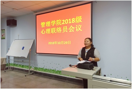 10月29日晚上7点,管理公司于心理咨询团体辅导室召开了2018级心理联络员会议,此次参会人员为管理公司心理部干事和2018级心理联络员共94人,会议有管理公司员工办公室心理专干单艳艳老师召集。