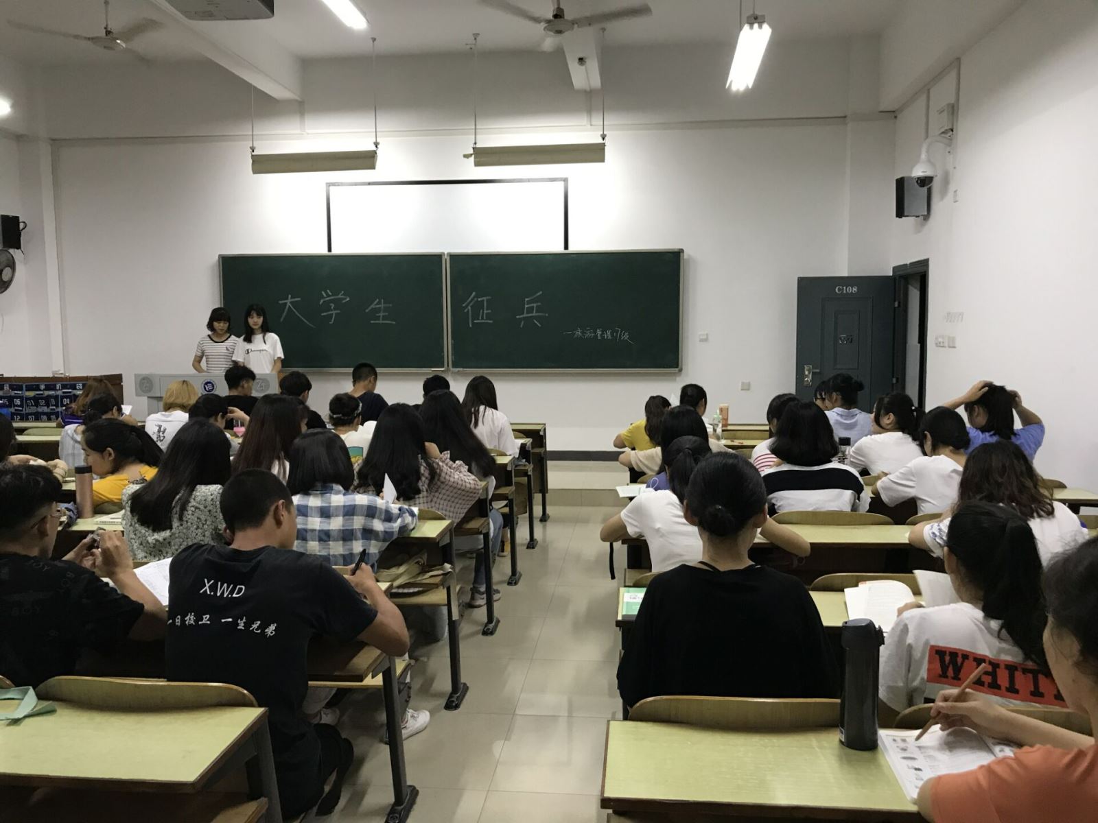 老员工入伍是新形势下提高部队兵员素质、 加强国防和军队现 代化建设的重大举措, 也是提升老员工精神文化生活的重要途径。为加强征兵政策宣传,做好2018年老员工应征入伍工作,5 月15日前,管理公司各专业大一至大三各班的同学分别在老师和班委的带领下举行了征兵主题班会。