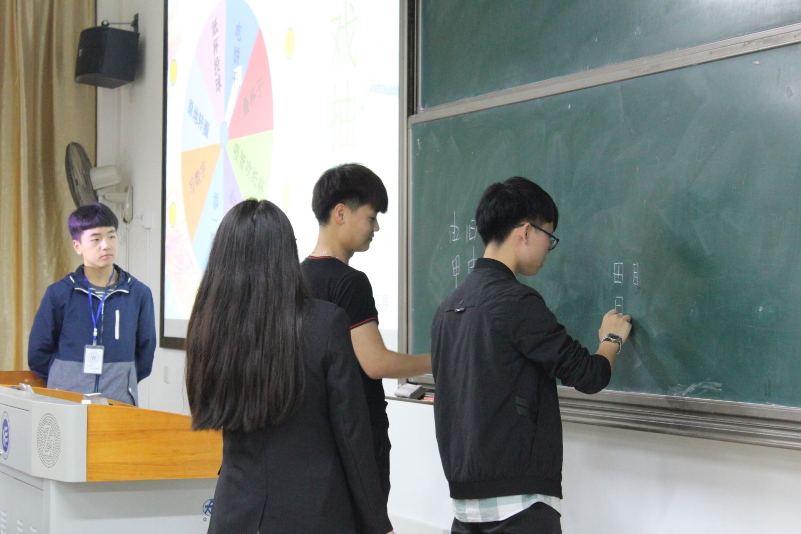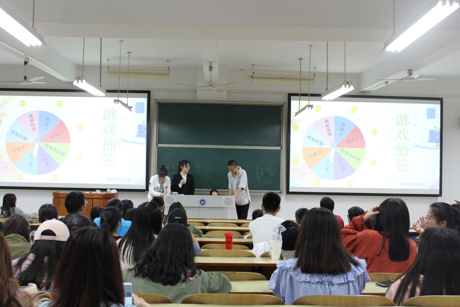 “超级班级”复赛共四个版块,分别为任务型抢答、班级答题接力赛、互动环节、难度挑战加分赛。首轮各班派代表猜拳决定挑战任务,任务完成抢先按铃者优先答题,答对计分,否则对方得分。叠杯子、吃柠檬、吹纸杯等8个趣味性的任务让同学们乐在其中,跃跃欲试。代表同学动作敏捷,反应迅速,为本班赢得了抢答优先权,点燃了赛场气氛。