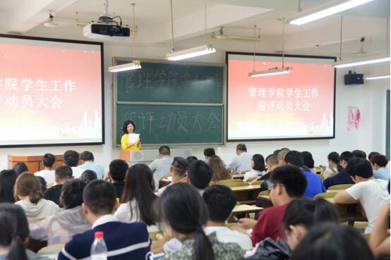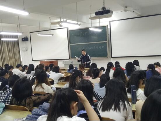 2018年4月12日中午12:00,管理公司全体同学在主校区教室内进行本学期第二次月评会议。管理公司党总支副书记钱祖煜,学办辅导老师罗荃、黎博、单艳艳、包海燕、宋志航分别对工商管理、旅游管理、人力资源管理、会计学、物流管理、市场营销六个专业开展讲评,本月心理会议也同月评会同一时间顺利展开,有心理专干单艳艳老师主讲。