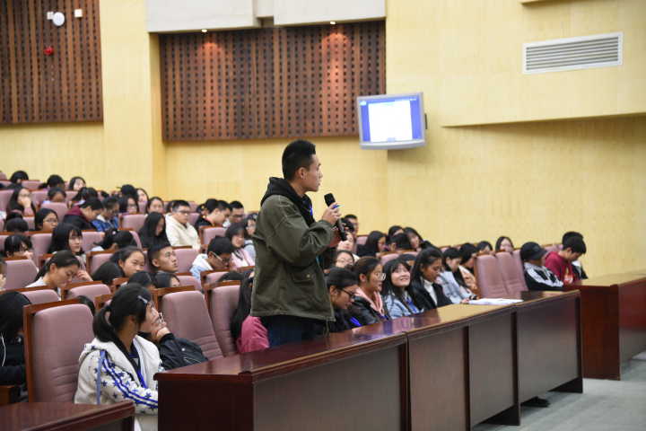罗荃老师以一组妙趣横生的连环画切入,意味深长,启发同学思考,鼓励同学们打开思维的局限性。在场同学主动发言与罗老师分享自身学习经历,发表自己对职业规划的看法。
