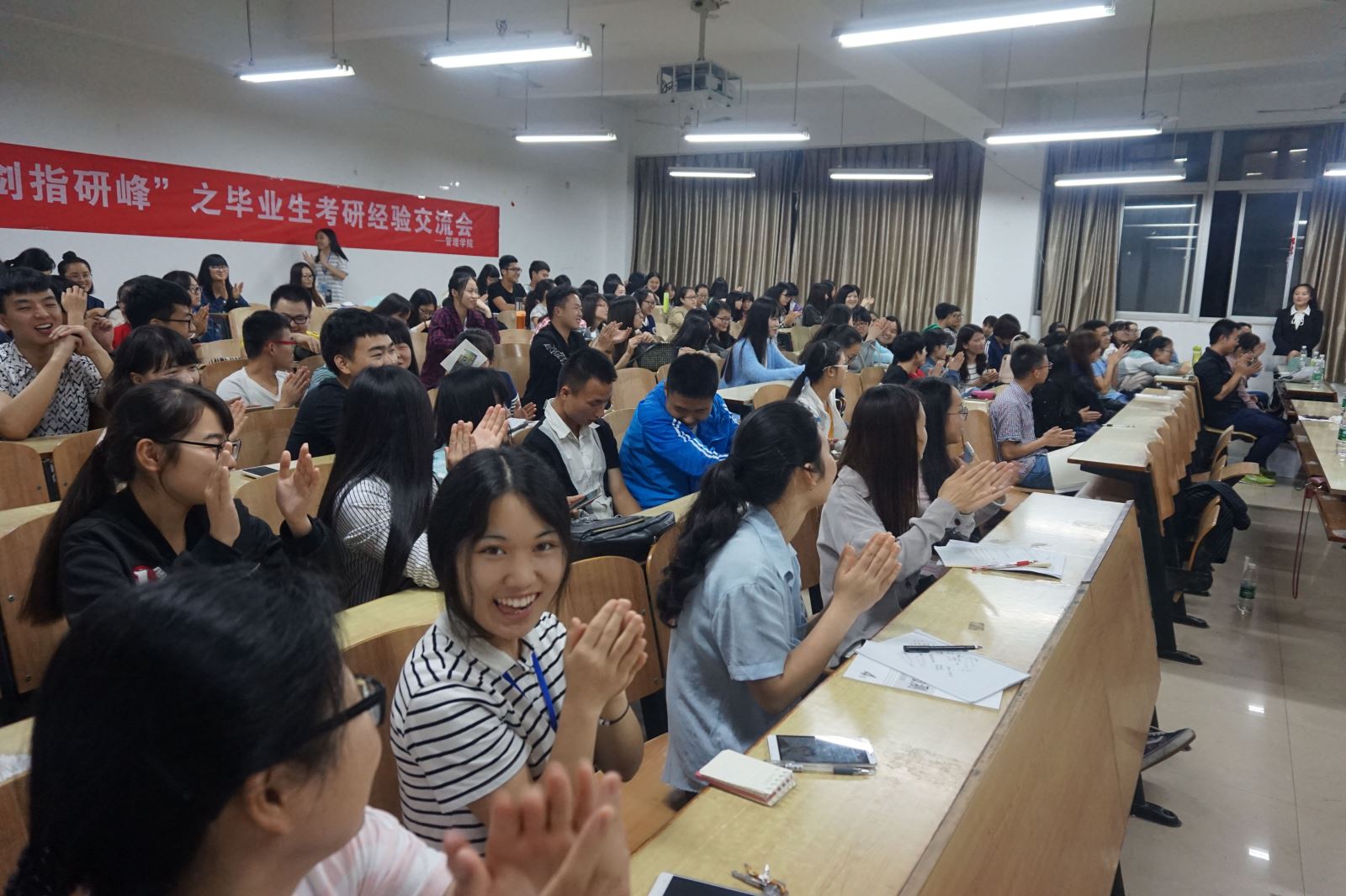 通过两个多小时的经验交流,大家都对考研原因、准备、过程等有了一定了解,使同学们受益匪浅。 “向着太阳的纵身一跃,至少也能落在月球”,定好你的目标,拿出你的实力,自然有收获的喜悦。不论考研结果如何,至少和考研之前的你相比,已跃出一大步,成长了一大截,相信这是这次交流会给同学们最大的感受。