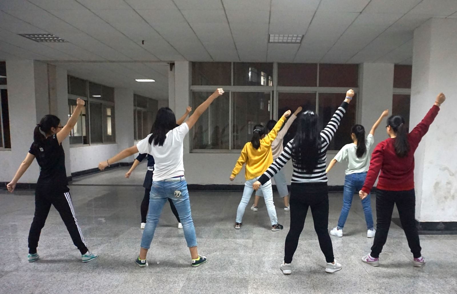 晚上七点至十点,在教学楼CD栋之间,总能寻找到管理公司健美操队的成员们的身影。管理公司健美操队是管理公司在2016年上学期正式规范化的比赛院队,他们的训练内容主要有健美操、啦啦操、有氧健身操和街舞,管理公司健美操队是一个老员工健美操爱好者们的福地。