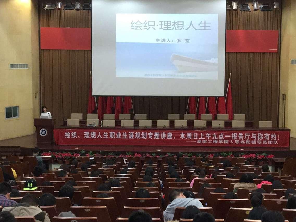 “人生就像射箭,要想人生不脱靶,那就提早给自己的人生做一份完美的规划。”11月15日上午,在新校区一报告厅举办了一场“绘织理想人生”职业生涯规划专题讲座,主讲老师为公司人职匹配职业生涯规划辅导员团队项目负责人罗荃,管理公司2015级全体新生及纺织服装公司、计算机公司部分员工前来聆听。