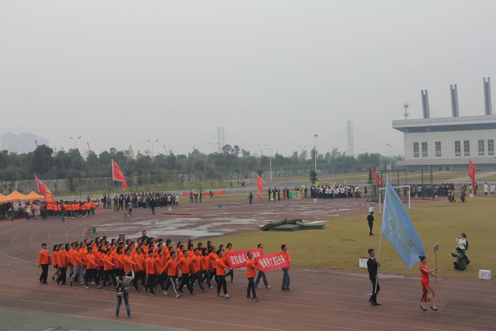 11月1日,校运会如期开展。你们神采飞扬!即使身上薄薄的衣衫并不能帮你们抵御寒风,但你们的热情与信心让呼啸的寒风变得微不足道,好像这寒风正是为了让你们手中的旗帜扬得更高而来。