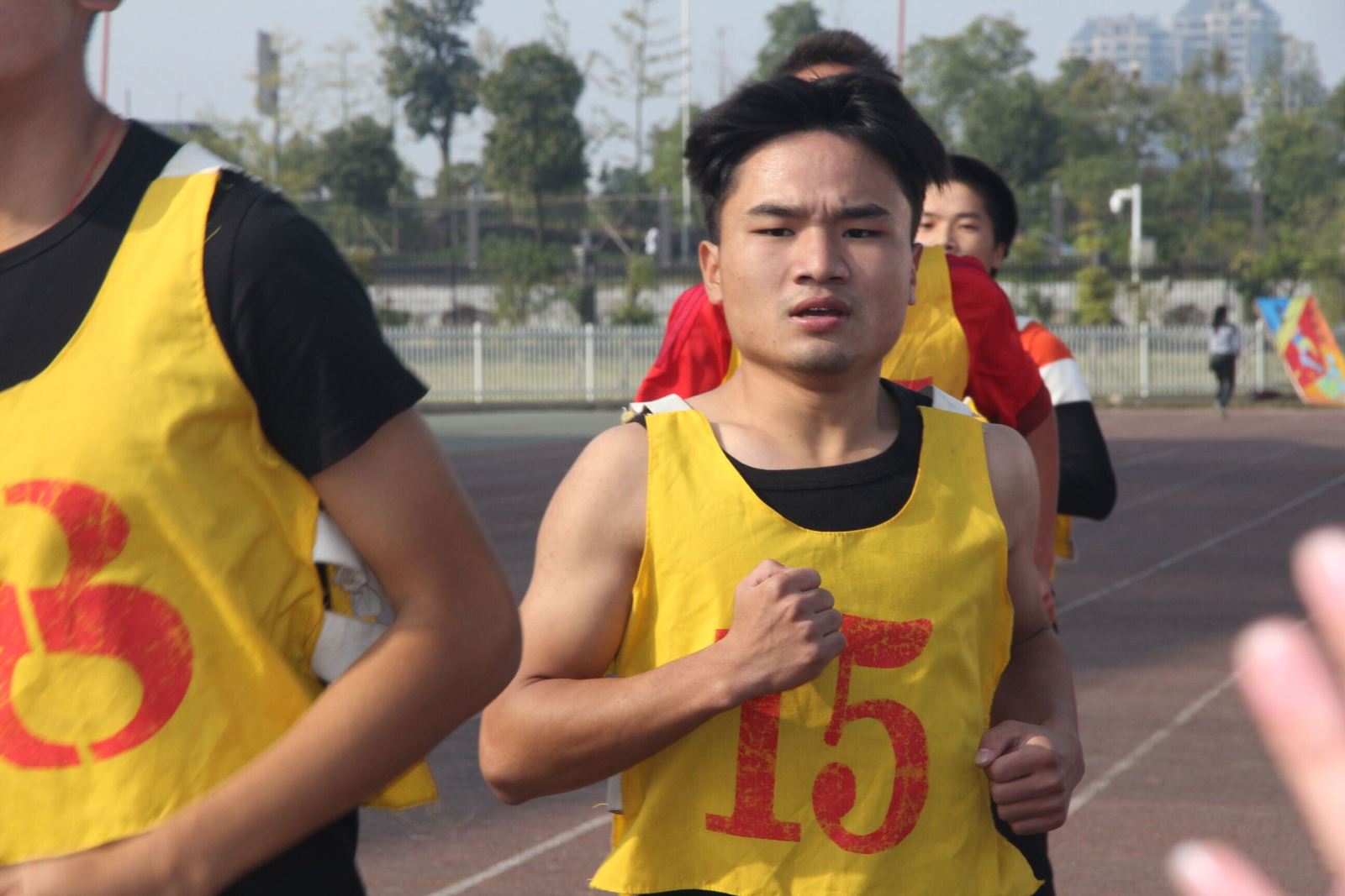 日光的照射下,只听到一声令下,青春飞扬,风华正茂的长跑运动员们如风一般奋起发力起跑。只见一抹抹黄色从眼前经过,他们所经过的地方加油声呐喊声此起彼伏,绵延不绝。