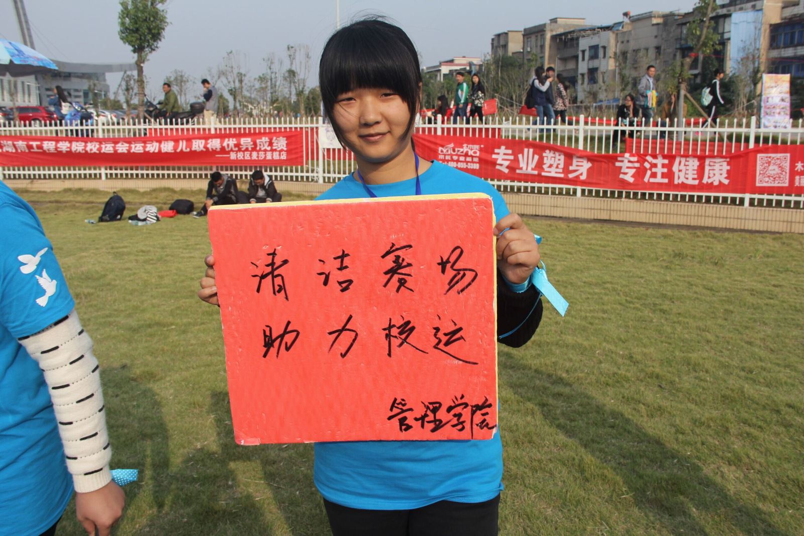 任劳任怨,让人心生佩服。休息完毕,他们便走到赛场边为运动员加油喝彩。他们虽然不是赛场上的健儿,但是他们是赛场外最靓丽的风景线。管院同样以有他们这样在背后付出的志愿者而自豪。