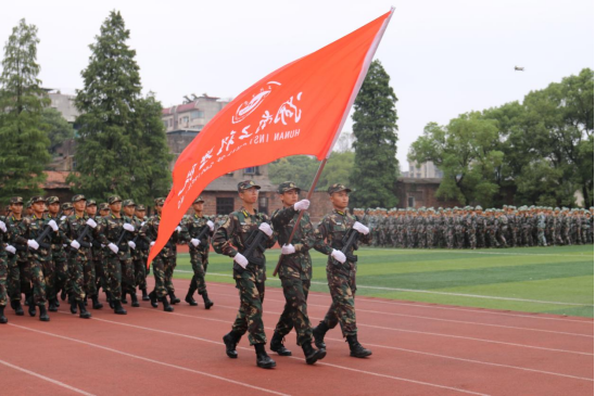 本次军训汇报演出由四营营长朱亮主持。随着朱亮的一声令下,分列式进行曲响起,标兵就位,分列式正式开始。伴着慷慨激昂的解说词,管理公司的方阵向主席台走来,他们的口号高昂嘹亮,他们的步伐自信坚定,整齐划一的动作洋溢出青春的朝气磅礴,短短的五十米,是为期半个月军训成果的最好表现。接下来,匕首操方阵迅速布满了整个操场,手持着战斗匕首展示着他们的战斗力,挺拔的身姿,统一的步伐,显示着他们的刻苦训练。最后,匕首操方阵退场,冲锋号角再次吹响,军体拳方阵声势浩荡冲上操场并迅速布好阵型,他们队列整齐,行动一致,他们出拳虎虎生威,踢腿凌厉有力,他们是一弯燃烧的霓虹,展现出管理公司新生的勃勃生机。