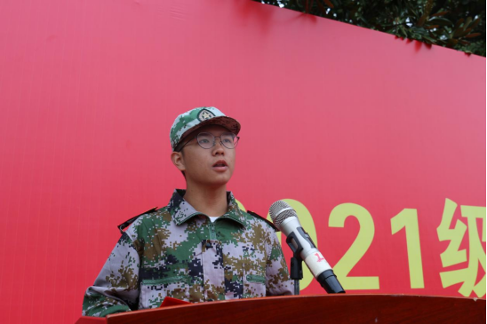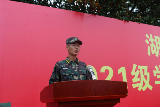2021级工商管理专业刘彦成同学作为军训学员代表发言。他分享了军训的经历与感悟,他表示通过军训,同学们克服了懒惰与散漫,养成了良好的生活习惯。为期半个月的军训,不仅锤炼了他们的品格、增进了同学间的友谊,更激发了他们的爱国主义情怀。另外,他也表示对军训期间教官的付出和老师的关心给予由衷的感谢。四营十连连长孙智豪作为教官代表发言,他总结了大家在军训中的收获。并希望同学们将军训中培养的高尚精神品质、过硬的纪律作风、良好的生活习惯融进未来四年的老员工活中,为以后的人生路奠基。