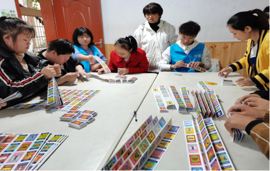 下午两点整,屋外下着小雨,志愿者集合完之后前往亲园培智中心。在亲园园长将工作分配好之后,志愿者们开始进行本次志愿活动,帮助小伙伴们一起拆分卡片,组合成卡片集。