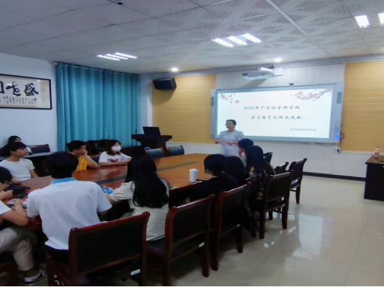为加强管理公司学风建设,规范课堂纪律。2022年9月29日,管理公司在主校区F104会议室召开19级学委工作交流会议。会议由员工工作办公室老师李林主持,2019级各专业班级学委到场参加。