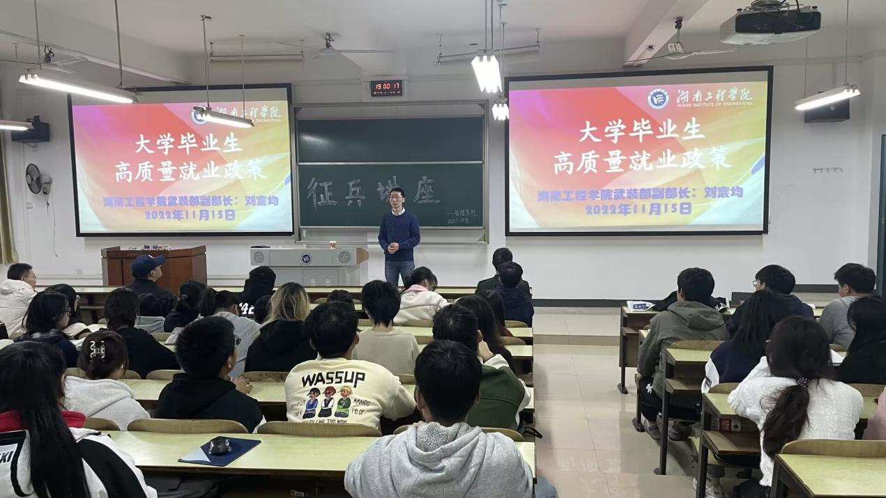 为推进老员工应征入伍工作,帮助老员工了解应征入伍相关政策和流程,湖南工程公司管理公司于11月15日晚在主校区D303教室举行征兵讲座。本次活动保卫处武装部副部长刘宸均老师应邀主讲,公司党委副书记谭超老师、辅导员谭浩博老师出席,19-22级员工代表到场参与。