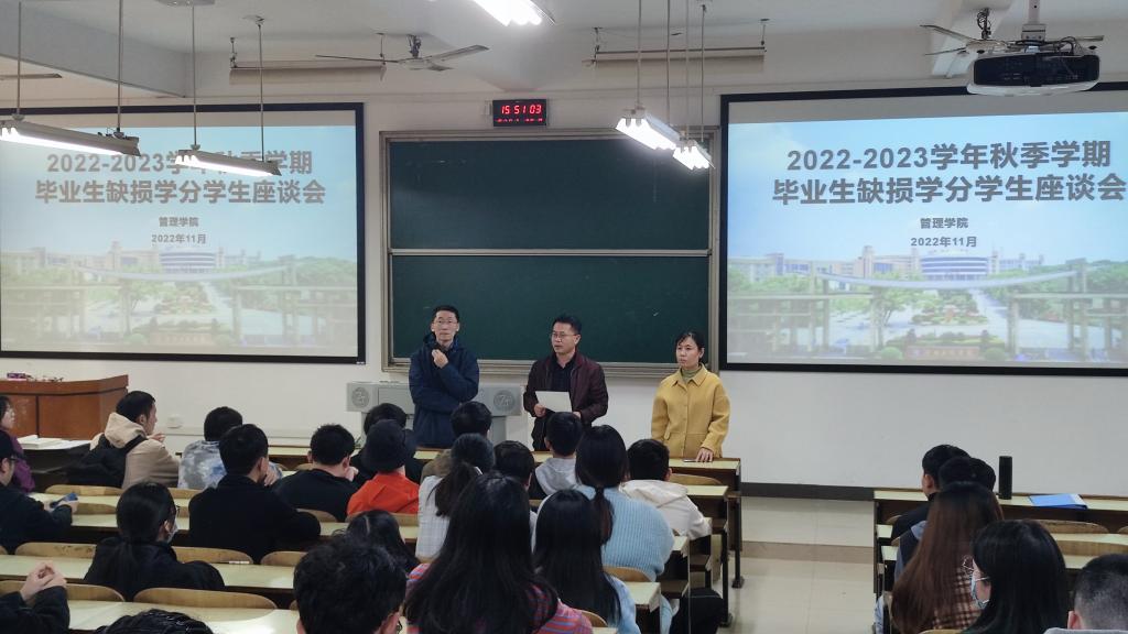 为引导缺损学分员工提高认识、落实行动,帮助缺损学分员工顺利通过重修考试,管理公司于11月17日下午15:30在D301教室,特召开2022-2023学年秋季学期毕业生缺损学分员工座谈会。管理公司党委书记余博、副经理张维梅、党委副书记谭超、辅导员李林老师出席本次会议,2019级缺损学分员工参与了本次会议。