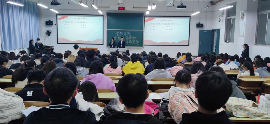 活动以线上与线下相结合的形式开展。依托易班APP进行线上答题,自11月20日活动通知下发以来,管理公司各团支部积极组织同学有序参与,各专业选拔答题成绩排名前四的同学组成参与决赛的队伍,于11月27日参加在主教学楼D栋101教室举行的决赛。