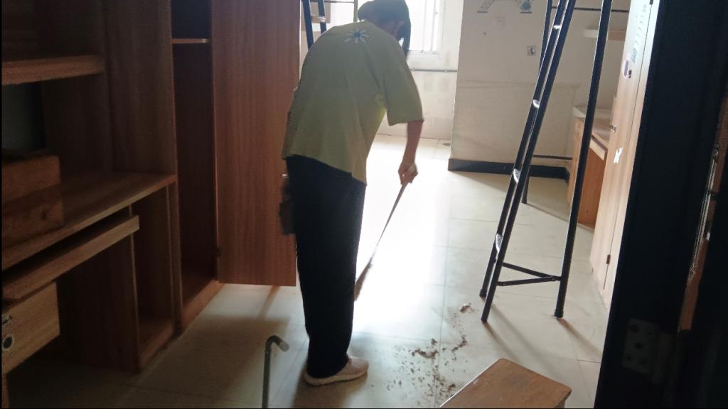 为营造舒适、整洁的生活学习环境,以实际行动迎接2023届新生的到来。9月12日下午,管理公司谭浩博老师带领生活纪检小组和志愿者们走进员工寝室,开展新生宿舍卫生清洁志愿活动。