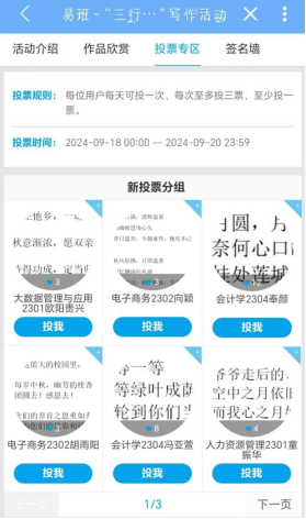 “三行家书,感恩父母”写作活动介绍及投票界面