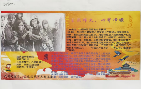 本次活动以寝室为单位,鼓励同学们通过采访长辈、查阅史料等方式,收集校园抗战事迹、平民抗战经历等鲜活故事,并以“寝室故事卡”形式呈现——卡片融合抗战元素设计,既有老照片的历史温度,又有寝室成员的感悟共鸣。活动启动以来,各寝室积极参与:有的寝室聚焦西南联大师生“以书桌为阵、以书本为器”的迁徙求学故事,还原战火中“停课不停学”的坚守;有的寝室深挖“八女投江”等英雄事迹,以青年视角诠释“巾帼不让须眉”的家国忠诚;还有的寝室梳理东北高校流亡师生的办学史,将“弦歌不辍”的精神与当代老员工的责任担当相联结。