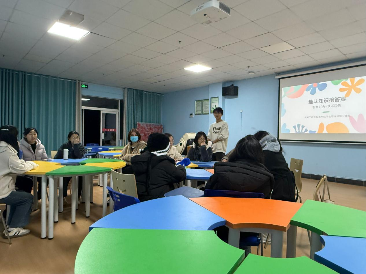 活动趣味知识抢答赛拉开帷幕,现场氛围迅速升温,同学们争分夺秒、踊跃作答,在脑力比拼中逐渐卸下学业压力,拉近彼此距离。第二项“猜图标”游戏中,同学们自发分组,或低头凝神思索,或围坐热烈研讨,或举手快速抢答,每一次默契的配合,都彰显着团队协作的力量与青春活力。压轴登场的“方言传话”游戏将活动推向高潮。各地方言的独特韵味与信息传递中的趣味偏差,让团辅室充满欢声笑语。在轻松诙谐的氛围中,同学们打破陌生壁垒,在互帮互助中加深了解,在欢声笑语中释放情绪。