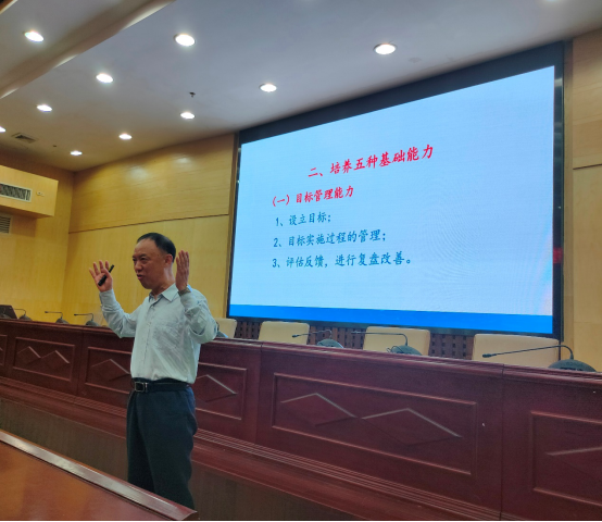 石景演讲的主题《成为优秀的管理者》,主要从管理者是什么,管理者的责任,如何成为优秀的管理者三个方面为同学们和老师们讲解,最后总结“优秀的管理者是老师,教授员工知识;优秀的管理者是教练,训练员工技能;优秀的管理者是牧师,提升员工境界。”