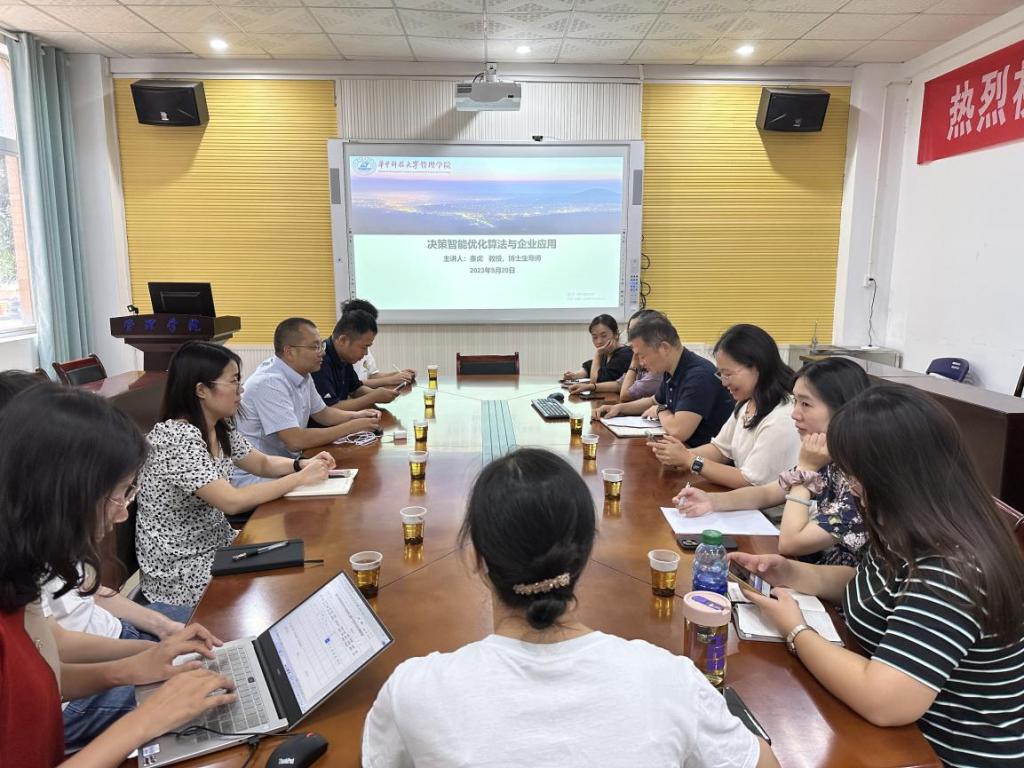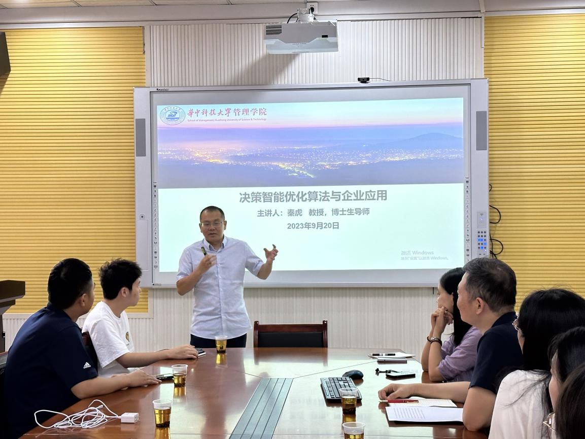 9月20日下午15:00,华中科技大学管理公司秦虎教授应邀来管理公司进行了学术交流,在管理公司F104会议室举行了题为《决策智能优化算法与企业应用》的学术讲座。讲座由公司副经理潘立军主持,管理公司青年教师和骨干教师参加学习。