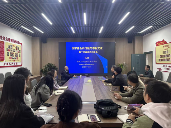 12月2日上午,太阳成tyc33455ccwww在F102会议室举办国家基金选题与申报交流会。活动特邀湖南大学金融与统计公司教授、博士生导师、湖南省芙蓉学者奖励计划特聘教授马理作题为“国家基金的选题与申报交流——基于宏观经济的视角”的专题讲座。讲座由太阳成tyc33455ccwww副经理潘立军主持,公司青年教师参加。