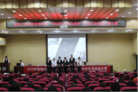 2019年5月13日晚七点半,2019年“WESTLINK西遇杯”管理公司职业生涯规划大赛复赛在湖南工程公司新校区教学主楼举行,复赛赛制为职业生涯规划展示与演说,选手们用4分钟并结合PPT、视频、配乐对自己的规划进行讲解。大一组选手们的职业生涯规划设计结构完整、逻辑清晰、条理清楚、详略得当、职业生涯目标制定贴切合理,演讲过程富有感染力。选手们展示完毕后,戴晶晶老师深入浅出地分析了每个员工的优缺点,指出比赛中选手存在的问题,同时她讲到:“同学们要树立职业规划意识、竞争意识和危机意识,明确自己的发展方向,充实自己的老员工活”。非大一组选手也是自信满满,其中林宇婕讲到“作为一个人力资源管理专业的人,成为HR更有优势,我会好好把握机会”。其余选手也从自我认知、职业环境分析、职业目标确定、评估与调整几个方面讲述了自己的职业生涯规划。展示结束后,三位评委从选手演讲、仪容仪表、PPT三个方面对选手们的职业生娃规划演讲进行了全面点评。段超群老师讲到“同学们自我评估比较全面,职业目标也相对清晰,但在规划中也有一些不足,希望同学们在规划的时候,要坚定信念,志存高远”。经过激烈比拼最终大一组晋级6人,非大一组晋级6人。