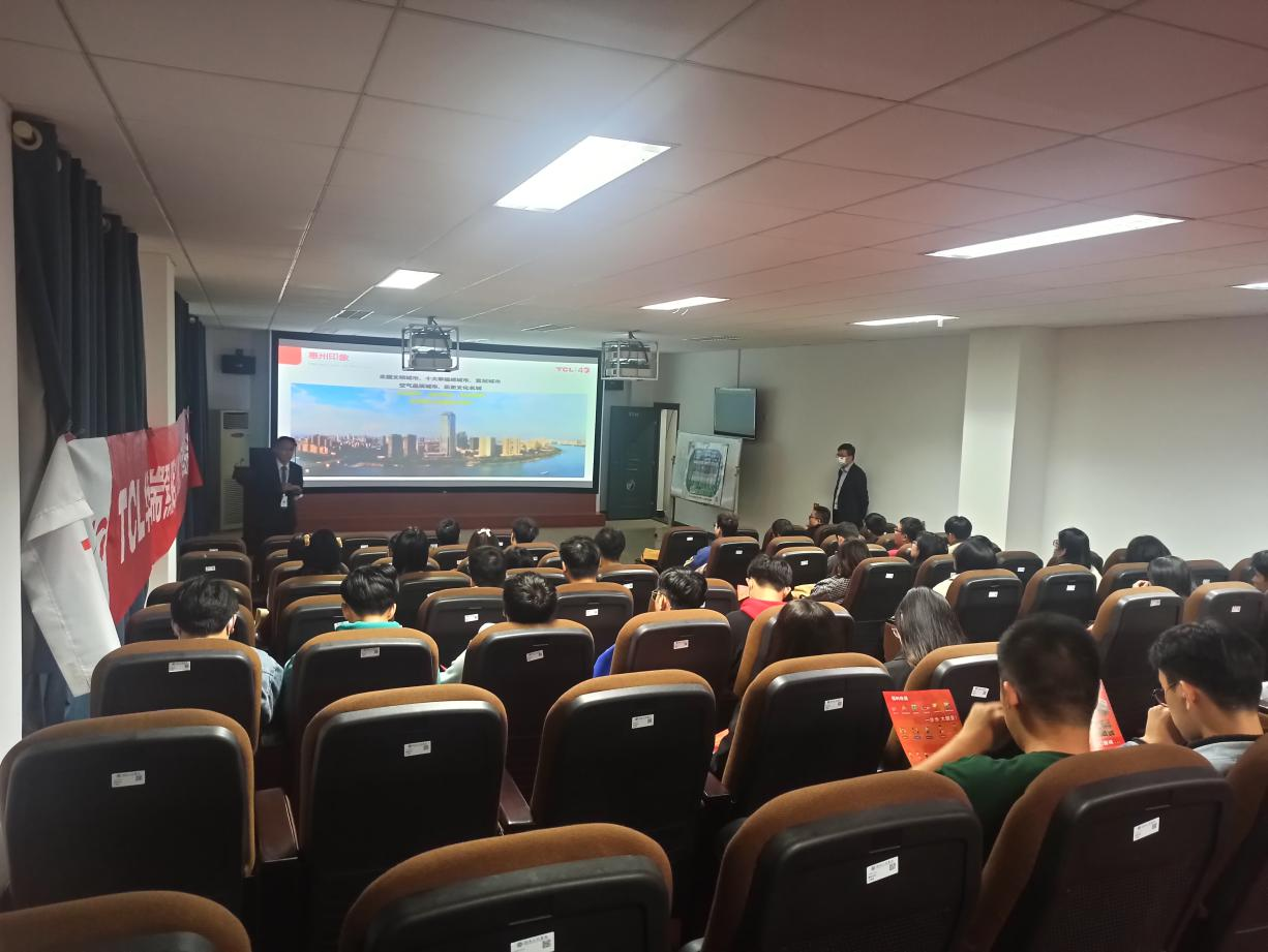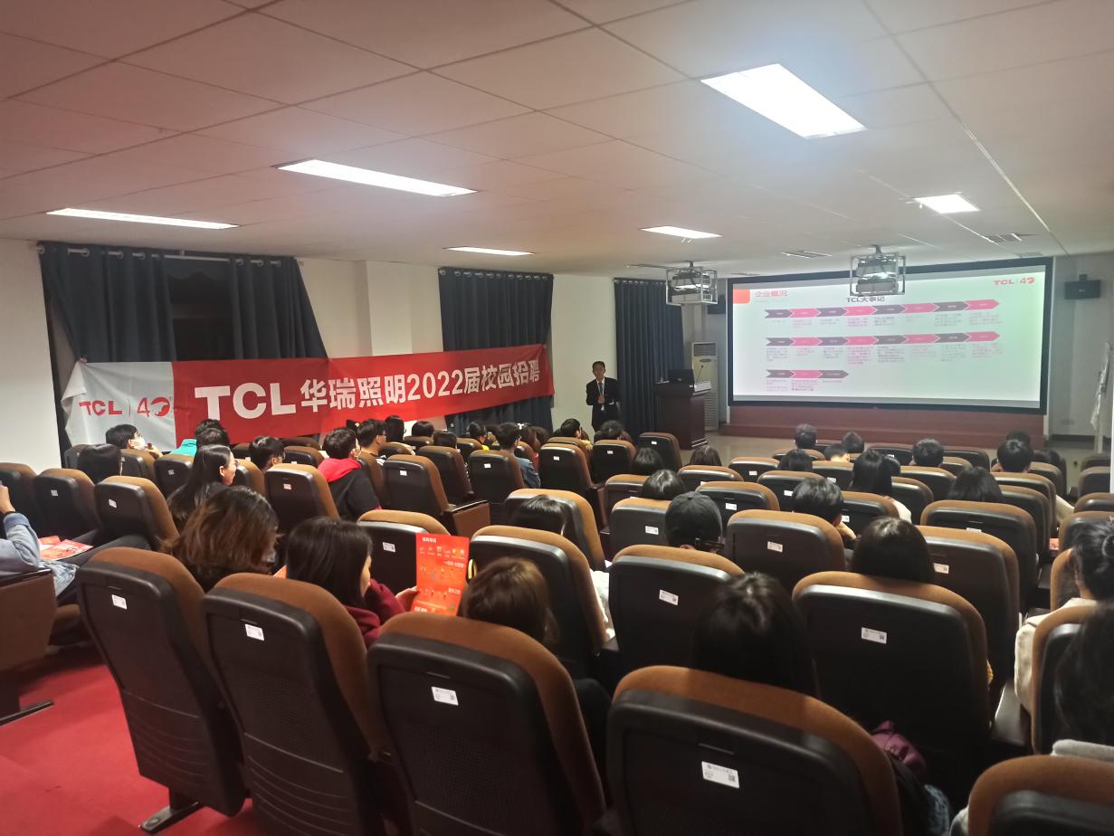 为积极宣传企业形象,加强公司与企业间交流,进一步提高就业率,10月21日晚8点,TCL华瑞照明科技有限公司2022届校园招聘宣讲会在主校区F510室圆满结束。