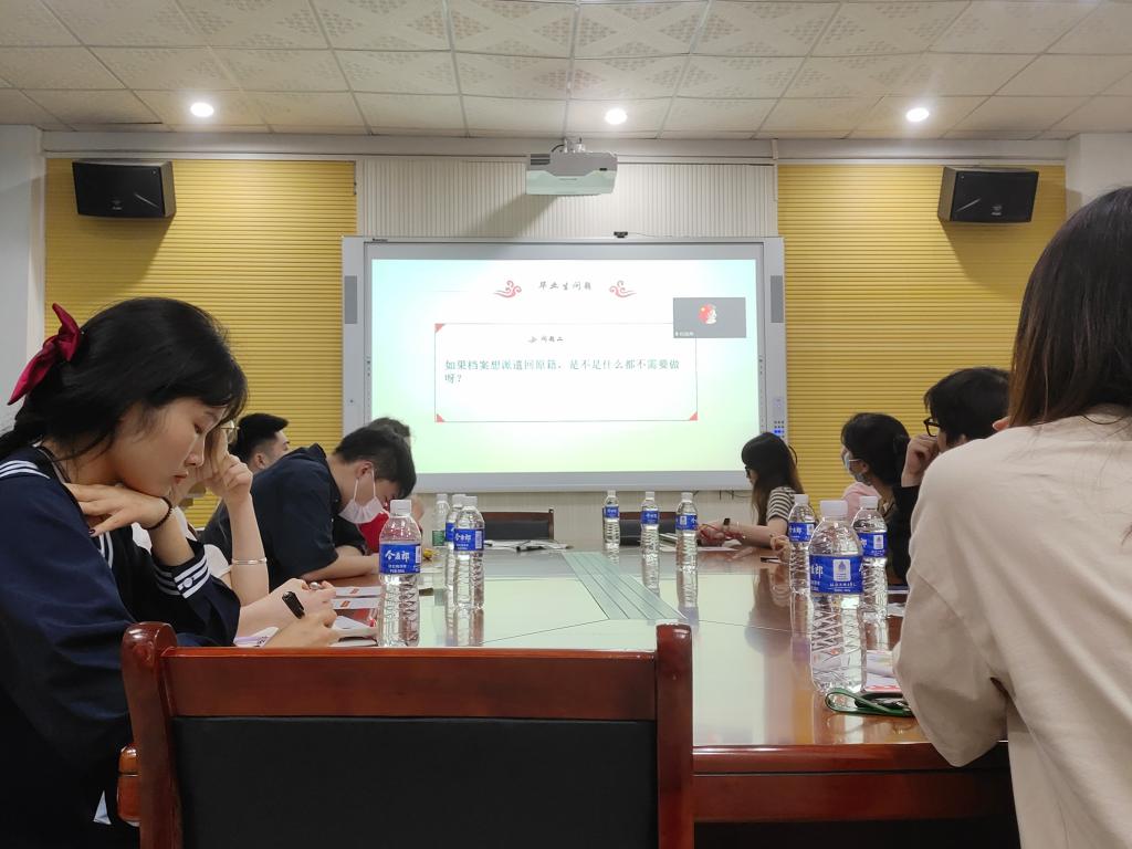 征兵讲座结束后,包海燕老师开始对就业毕业工作作出指示,她首先研判疫情影响,分析就业形势,并依据自身工作经验为基础,分享了自己就业方面的感悟并提供了许多切实的建议,同时引导员工主动适应当前就业形势变化,积极转变就业观念,多多把握面试机会,不断积累求职经验,尽早实现求职目标。随后,包海燕老师根据前期精准摸排,有针对性的为员工讲解相关毕业工作的要求,对员工提出的报到证、人事档案转接等问题进行一一解答。同时耐心地为同学们解答其它就业相关问题。在这之后,包海燕老师召开毕业班班长座谈会,多方面多角度地对毕业工作做出指示,包括毕业照、毕业就业材料的收集、毕业派遣、毕业安全事宜、毕业返校、贷款毕业生等相关问题。此轮交流会共持续了近两个小时,与会毕业生反响热烈,积极互动,提问有序。大家纷纷表示,将会牢记老师们的话语,在疫情期间做到“不放过一处信息点”,同时保持积极向上的求学精神,勇于创新。