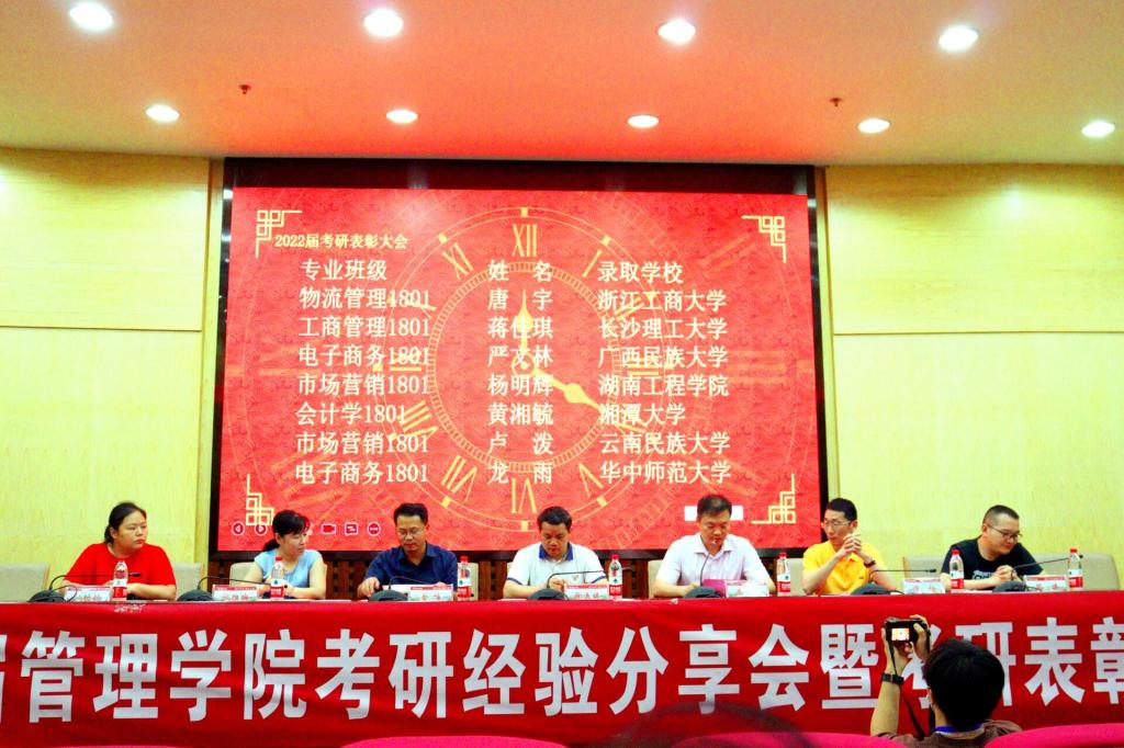 为表彰在2022年全国硕士研究生考试中取得优异成绩的管院学子,同时,为存在考研相关疑问的同学提供经验分享交流机会,6月10日19点至21点,湖南工程公司管理公司于新校区图书馆二报告厅成功举办了2022届管理公司考研经验分享会暨考研表彰大会。考研表彰大会由管理公司党委副书记谭超主持,到场领导包括管理公司经理徐运保,党委书记余博,副经理潘立军、张维梅,院办主任单艳艳,学办主任黎博,2022届管理公司考研优秀毕业生,管理公司大二、大三各班级代表参与会议。