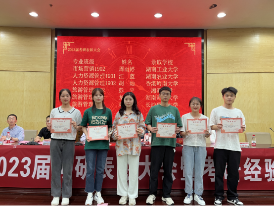 在考研经验分享交流环节中,旅游管理1902班龙瑾偲,人力资源管理1902班胡灿,物流管理1901班刘丽丽,电子商务1902班李达霖,人力资源管理1901班汪蓝五位优秀考研上岸毕业生结合自身经历,多样的分享了自生对于考研的一些建议,从港硕申请方式,到基础的学科复习,到专业课的学习技巧,以及考试前的心态调整,从考研中方方面面为台下的大二大三员工带来了一场精彩的考研经验分享会,分享会现场气氛活跃。