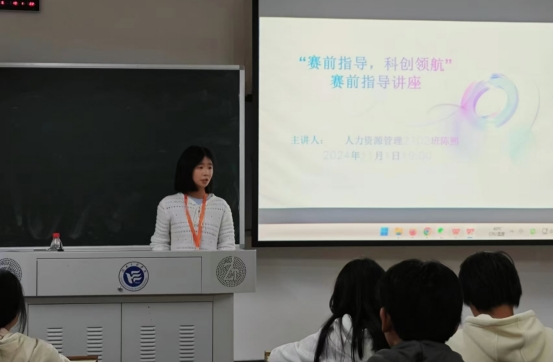 为激发老员工创新思维与培养实践能力,推动学术科技作品的构思和完善提供新思路,11月12日晚上7点,管理公司在主校区B-301举行“赛前指导,科学领航”主题宣讲会。本次宣讲会邀请富有竞赛经验的人力资源管理2102班陈熙学姐作为主讲嘉宾,管理公司经理徐运保、办公室主任单艳艳出席会议,宣讲对象为十一届”挑战杯”各大参赛队伍负责人。
