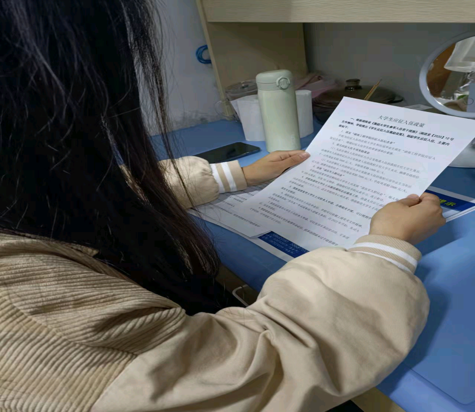 在宣传活动的基础上,安全督察部成员还向新生介绍了征兵的相应优惠政策,鼓励他们积极入伍,以此强化新生的责任感及保家卫国的意识,响应国家、社会、公司的号召,完成征兵的宣传工作。